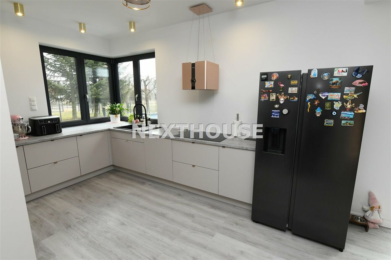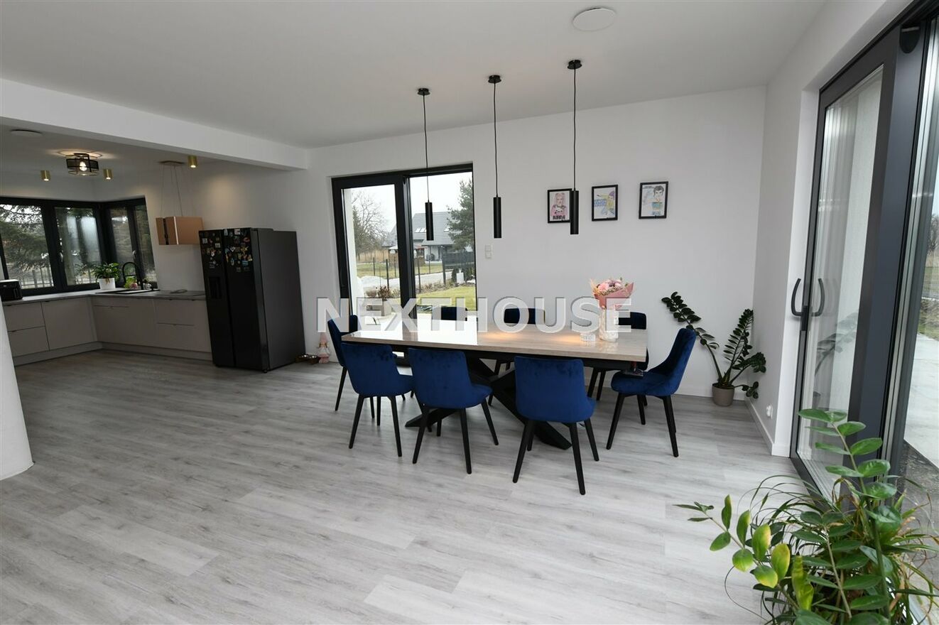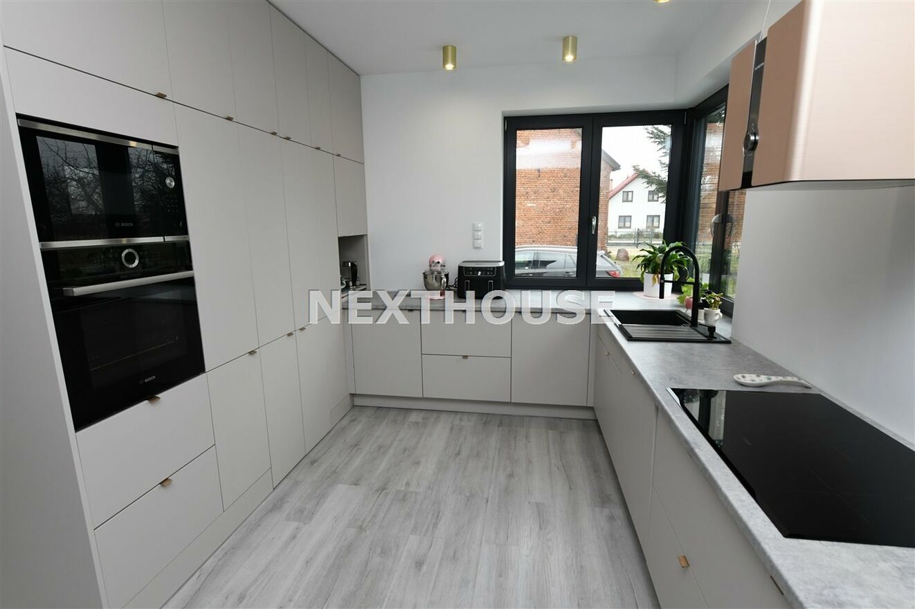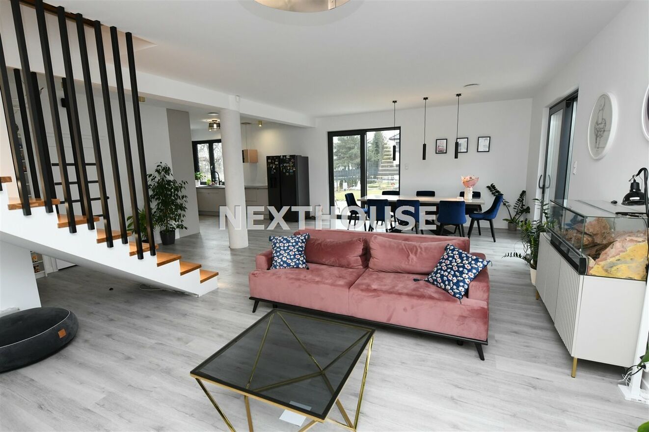 Dom wyróżnia się nowoczesnymi rozwiązaniami, takimi jak rekuperacja i ogrzewanie podłogowe/panele winylowe i gres na podłogach/ z osobnymi regulatorami temperatury w każdym pokoju.Wyprowadzone zostały instalacje pod klimatyzację oraz światłowód. Alarm,automatycznie sterowane rolety /parter i piętro/ oraz inteligentny system Smart, pozwalają na pełną kontrolę nad mediami i roletami, z możliwością dalszej rozbudowy. Na terenie ogrodu znajdują się dwa zbiorniki na deszczówkę, co wspiera ekologiczne podejście do zarządzania i magazynowania wodą.