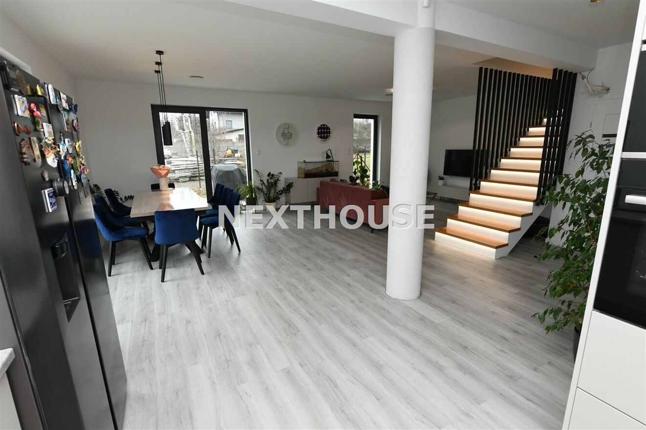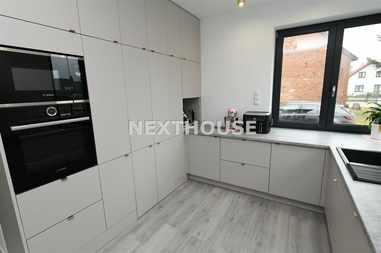 Dom marzeń z inteligentnym systemem Smart w Gliwicach Bojkowie.Na parterze tego funkcjonalnego,nowoczesnego bliźniaka z 2023 r./elementem wspólnym jest jedynie garaż/ znajdziesz przestronny salon z bezpośrednim wyjściem do ogrodu oraz nowoczesną kuchnię/z osobną spiżarnią/, wyposażoną w sprzęt AGD marki Bosch. Dodatkowo, na parterze znajduje się WC, wiatrołap oraz dwustanowiskowy garaż z automatyczną bramą "Krajewski", a także kotłownia z dwu-funkcyjnym bardzo ekonomicznym kotłem Brotje.