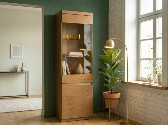Witryna z okleiny dębowej. Wymiary: 60x198cm Gł. 45cm Wybarwienie: Dąb pastelowy Cena katalogowa 1740zł Cena po ...