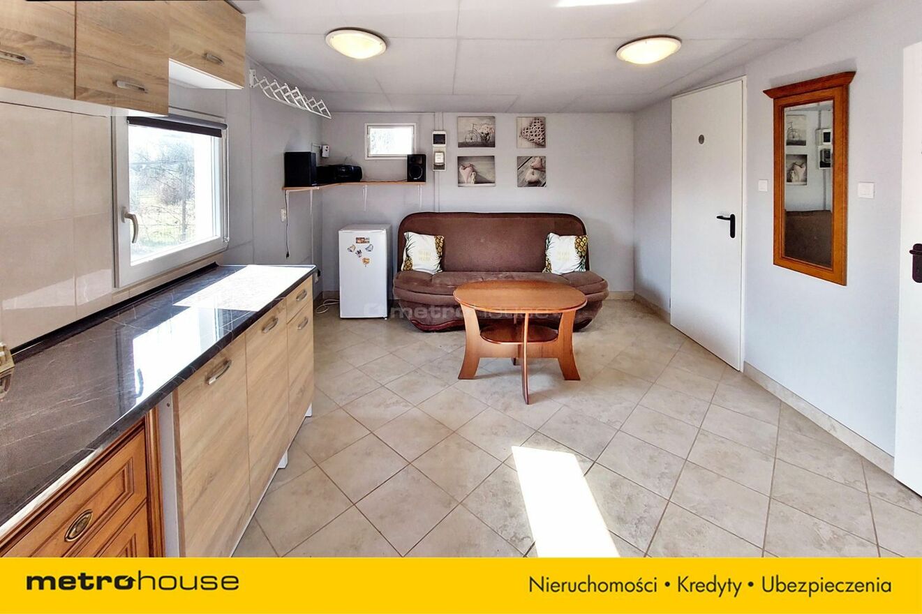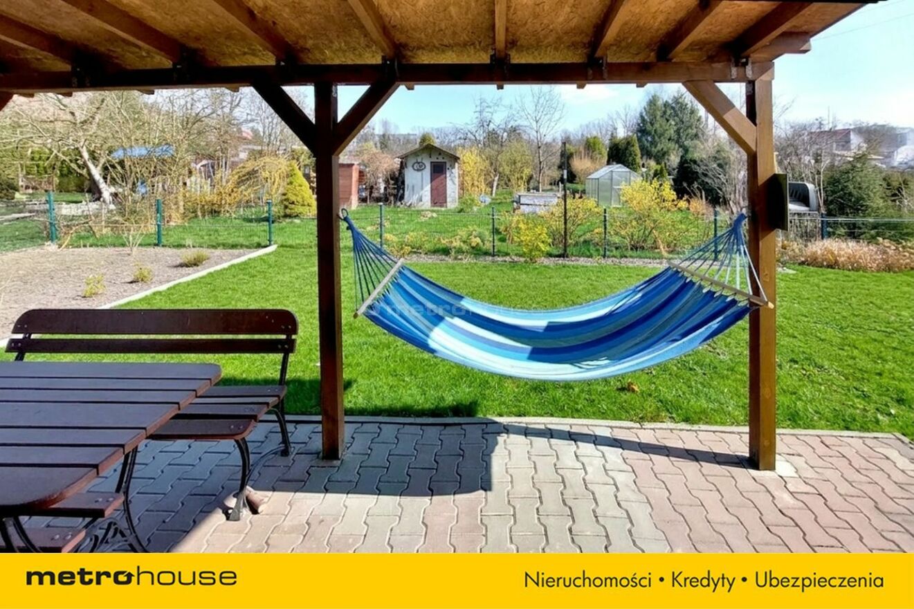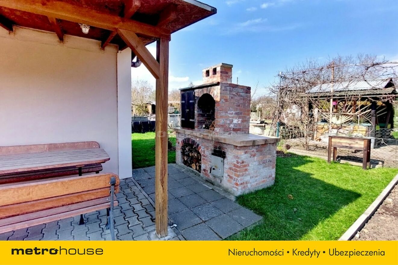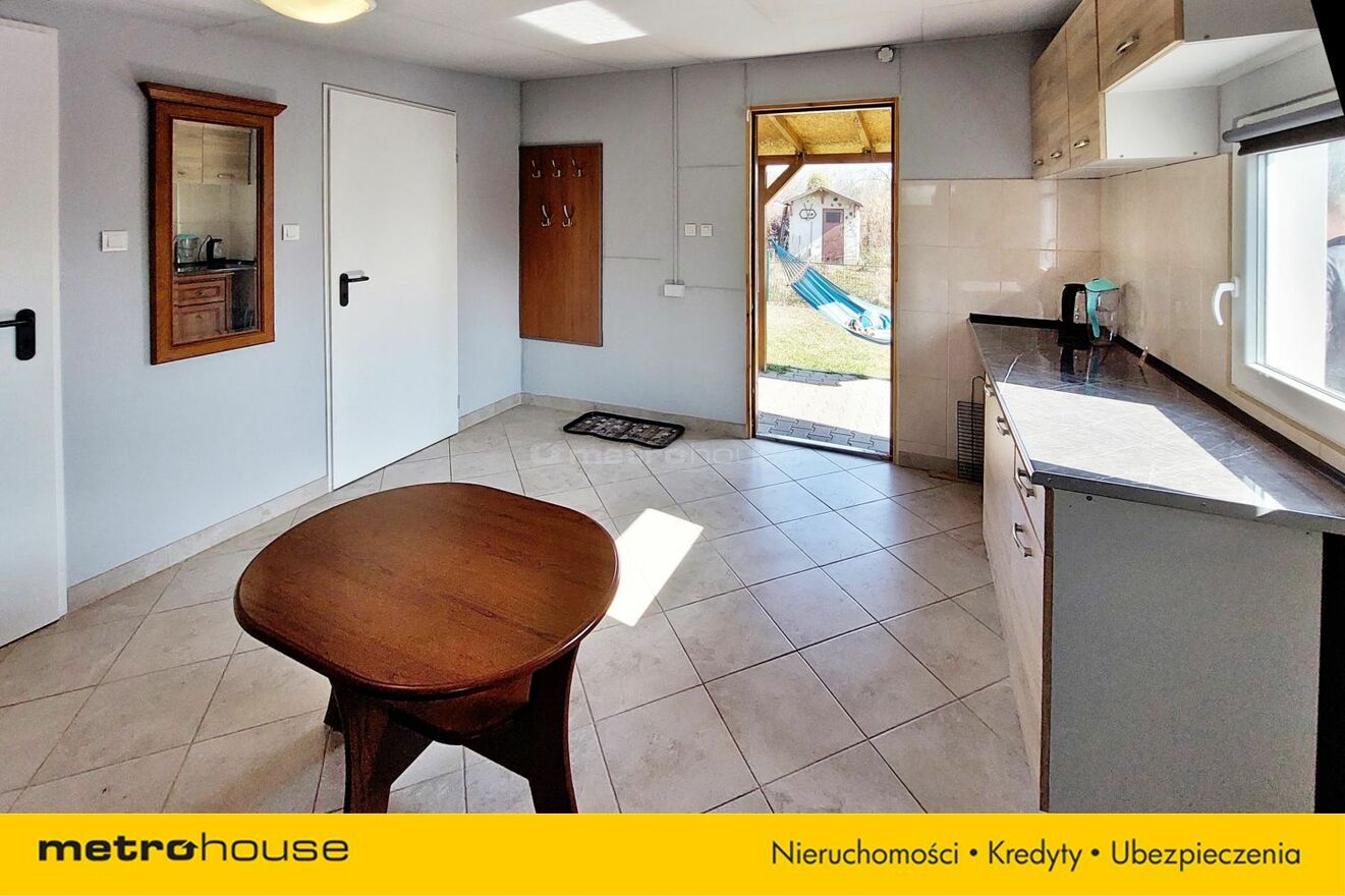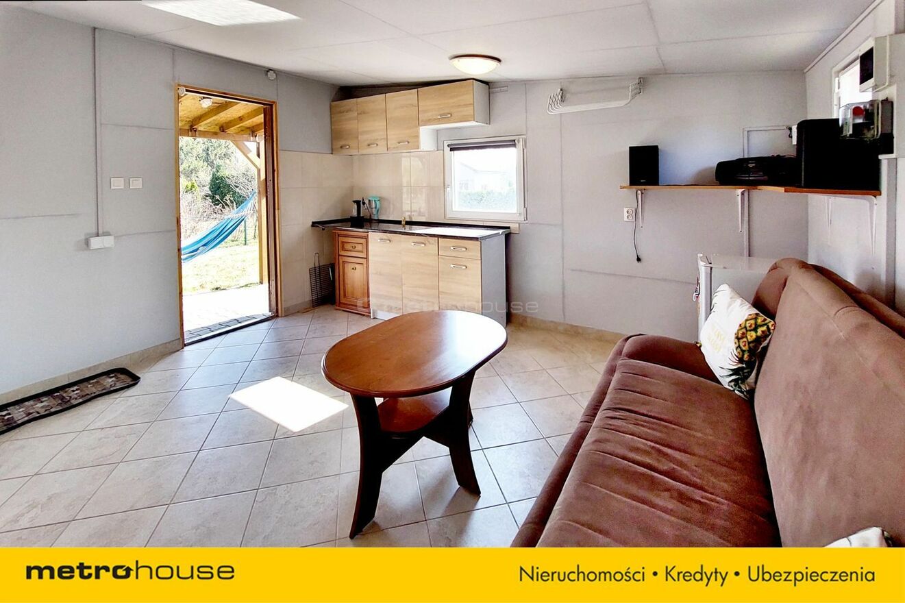 Na działce znajduje się domek o powierzchni 20 m², wykonany w konstrukcji drewnianej, ocieplony (styropian + wełna mineralna), dach pokryty papą. Wnętrze składa się z dużego pomieszczenia z aneksem kuchennym, WC i pomieszczenia gospodarczego. Piec zapewnia komfort cieplny. Na zewnątrz weranda o pow. 12 m2, która zapewnia ochronę przed słońcem i deszczem.