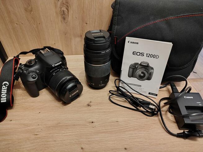 Canon eos 1200d +dodatkowy obiektyw 75-300 instrukcja,okablowanie i torba podróżna 450zł Tylko odbiór osobisty! Kraków