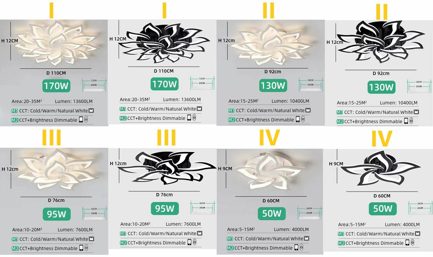 Lampa/y wewnętrzna LED Płonący Kwiat: 5-15m2 (50W) lub 10-20m2 (95wat) lub 15-25m2 (130wat) lub 20-35m2 (170wat) w bardzo dobrym stanie. NOWE Cena z WysyłkąZmiana koloru świecenia lampy za pomocą włącznika/wyłącznika światła lub z użyciem zdalnego pilota (pilot dołączony do każdej lampy)