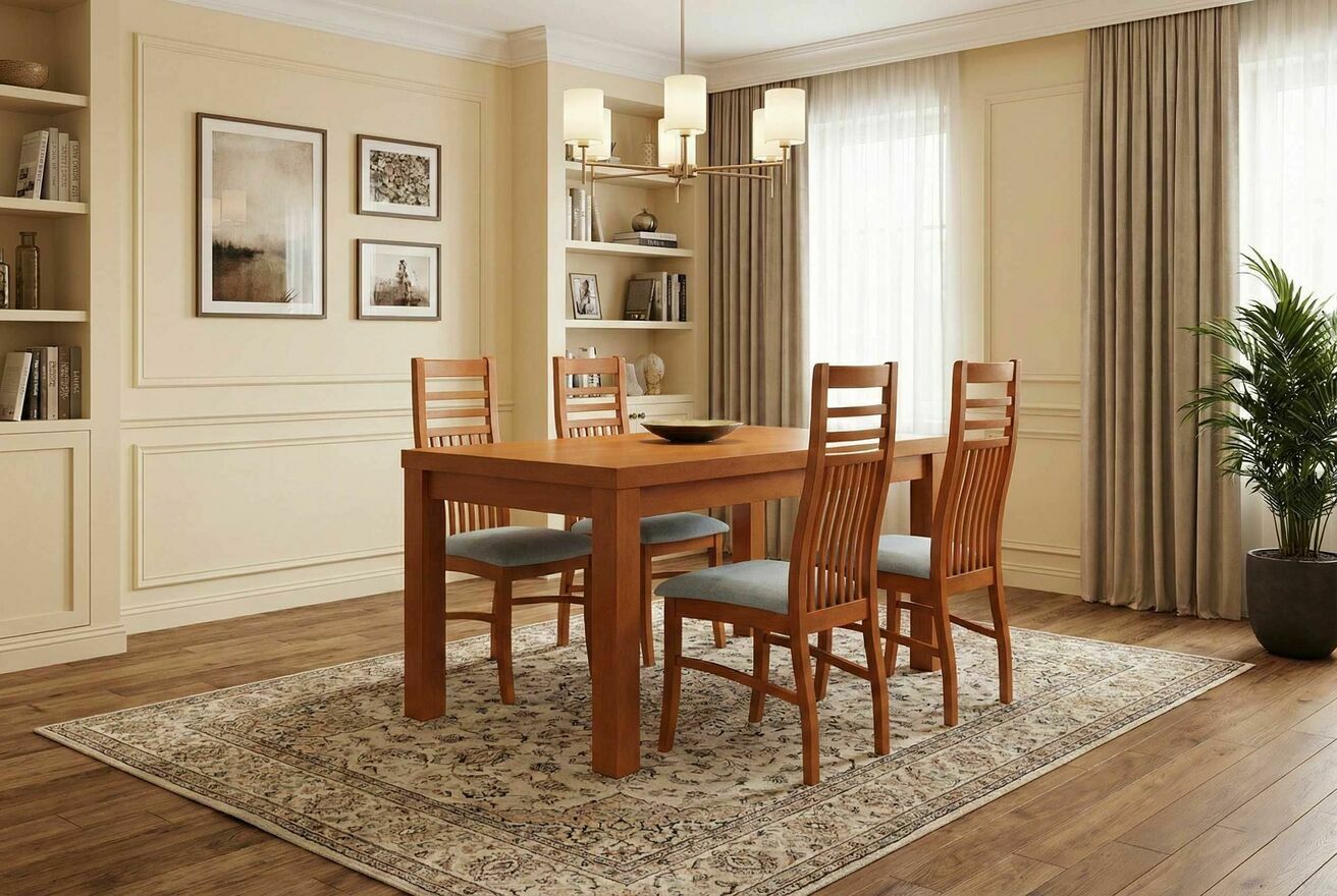 Stół klasyczny Bukowy kolekcja + 6 krzeseł nr. 10Nogi wykonane z Litego drewna 8x8cm