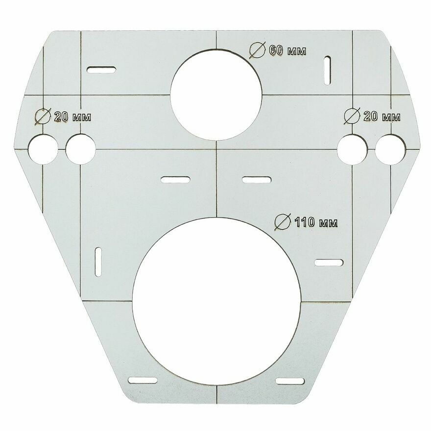 Szablon wzornik otworów stelaż WC Geberit SENDI NOVA TEMPLATESzablon do oznaczania i wiercenia otworów w płytkach ceramicznych, idealny do montażu WC oraz innych elementów wyposażenia łazienki. Przymiar do otworów pod stelaż podtynkowy.