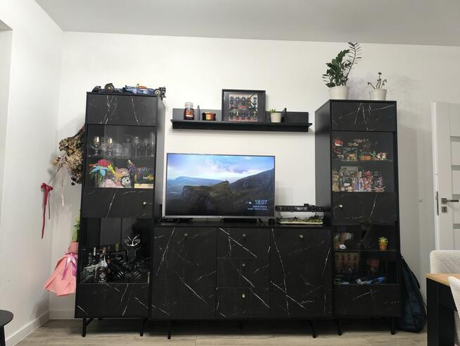 Witam. Mam na sprzedaż stylowy zestaw mebli Veroli do salonu w czarnym kolorze z marmurowym wzorem. 2x witryna ...